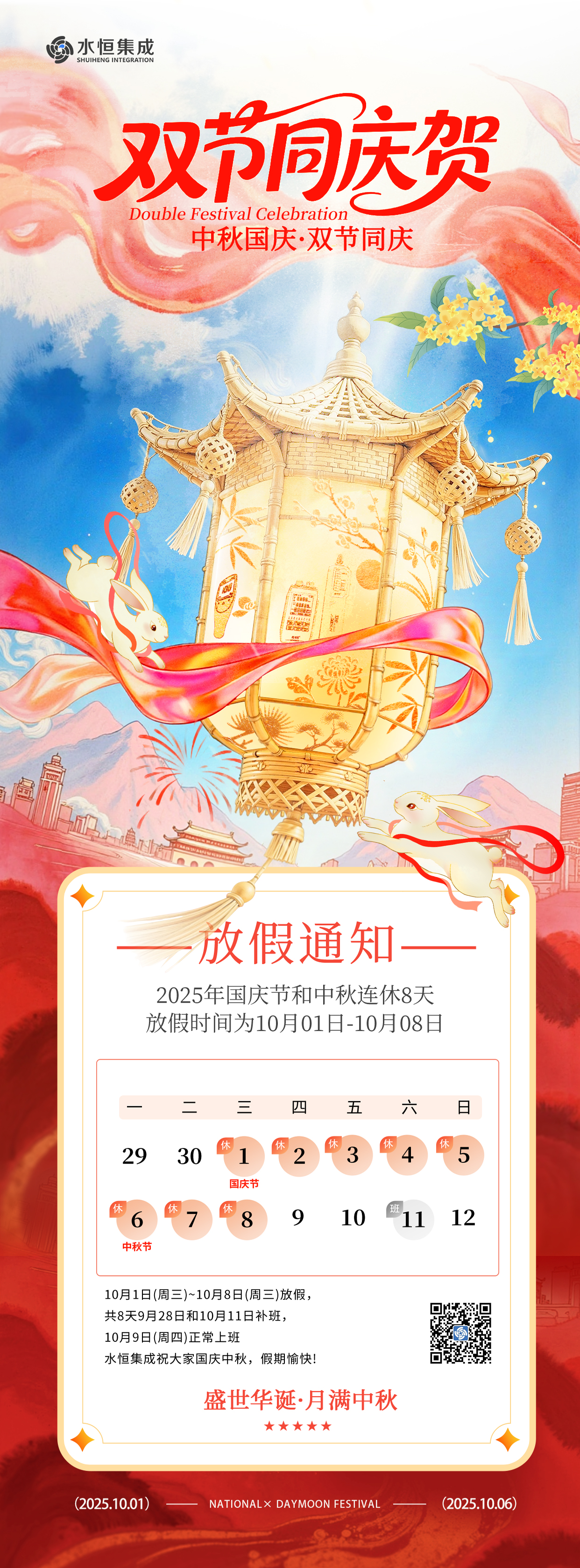 根据《国务院办公厅关于2025年部分节假日安排的通知》,结合公司运营实际,现将2025年国庆、中秋放假安排通知如下: